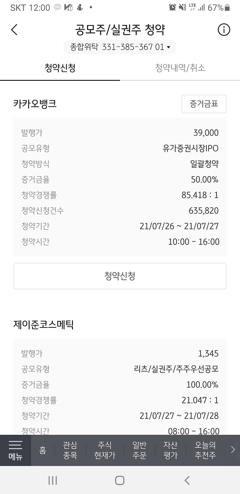 인터넷 청약 인터넷 청약 및 정보 조회가 가능합니다. 카카오뱅크(이하 카뱅)의 공모주 일반 청약 첫날 12조원이 넘는 증거금이 몰렸다.26일 카뱅 대표 주관사인 kb증권에 따르면 공모 청약을 받은 증권사 5곳에 모인 청약 증거금은 총 12조561억원으로. 최소 청약 증거금 19만5000원 배정 물량 kb증권 28%로 가장 많아. 카카오게임즈 공모청약 첫날 16조원의 청약 증거금 기록을 세운 데 이은 신기록이다. 고객수가 16백만명을 넘었다고 하니 카카오톡 쓰시는 젊은 분들 대부분이 카카오뱅크를 이용하고 계실거에요.